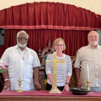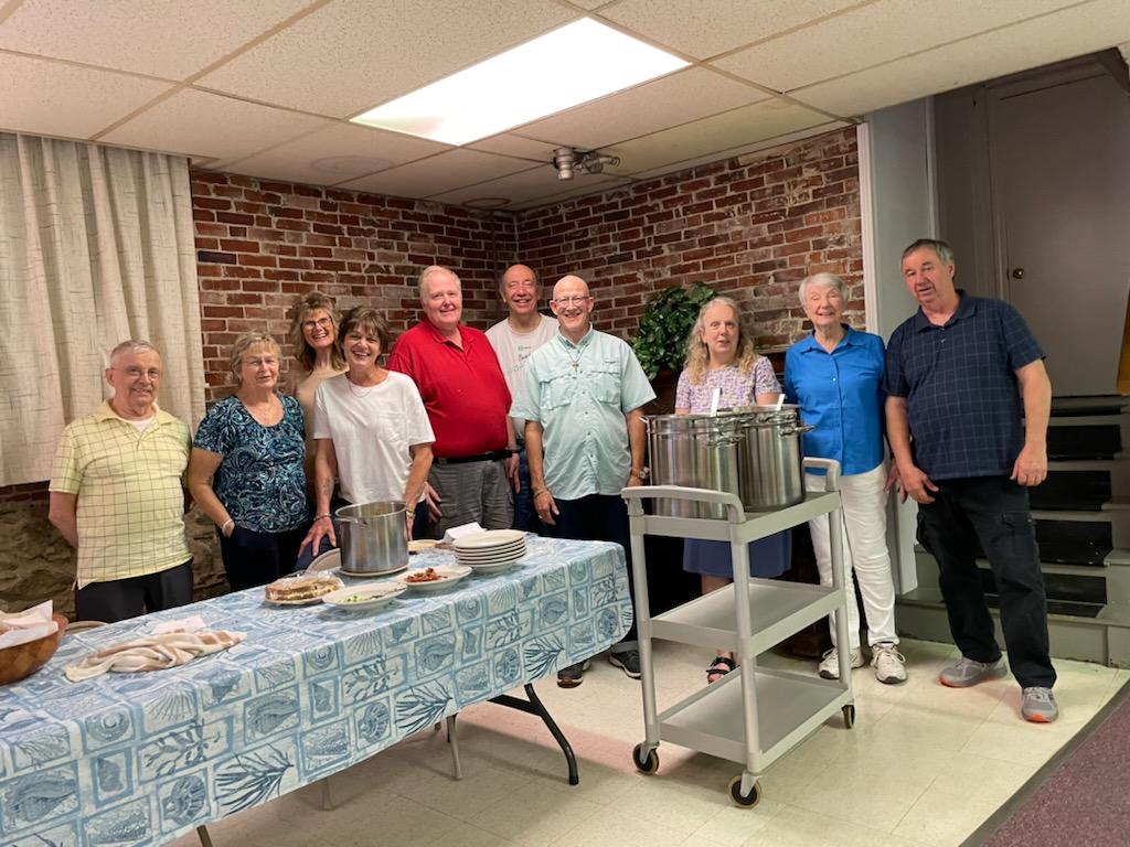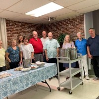 North Deering Congregational Church (#5) of Portland, Maine, hosted members of their church and pastors from several congregations in Maine for a chowder lunch topped off by Mexican chocolate mousse and whoopie pies. Rev. Cleere correctly guessed the secret ingredient in the mousse before engaging in dialogue with the group.