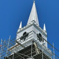 That evening, Ashley Cleere, joined by Julie and Jeff Robie, enjoyed a spaghetti dinner (with a surprise birthday cake for the ED) at Union Congregational Church of Amesbury, Massachusetts, (#6) newly affiliated with the NACCC. This monthly dinner enables neighbors to gather for fellowship. Community members formed an Alliance to preserve the building, believing that no church should have to sell its steeple. Their efforts, ranging from lemonade stands to house tours, raised enough money to renovate the building and won awards at the state level.