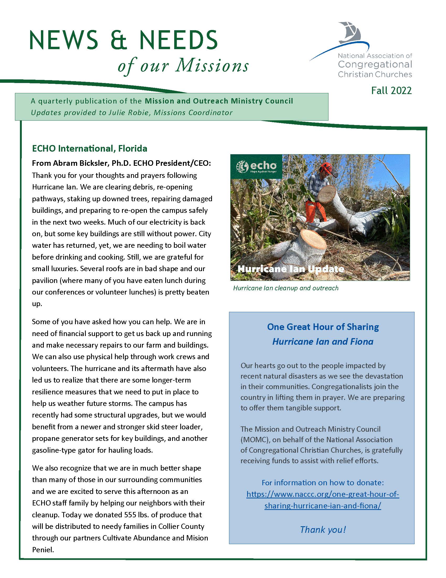 Mission News & Needs – Fall 2022