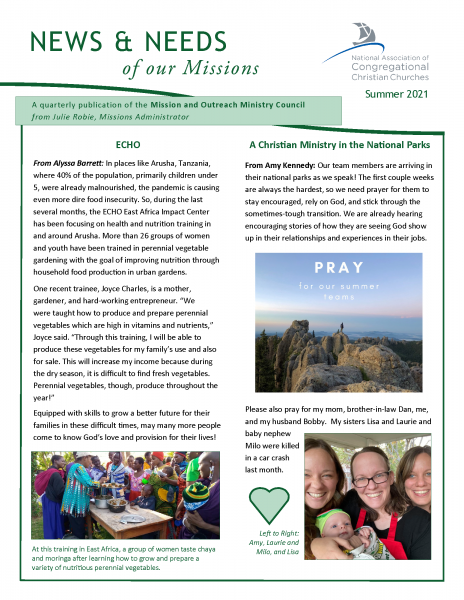 Mission News & Needs Summer 2021 Summer 2021 Catch up on the latest news from: Echo A Christian Ministry in the National Parks Hosanna Industries, Inc. Mission School of Hope Maine Seacoast Mission Love Worth Sharing June 24, 2021|Mission Resources, News & Needs|