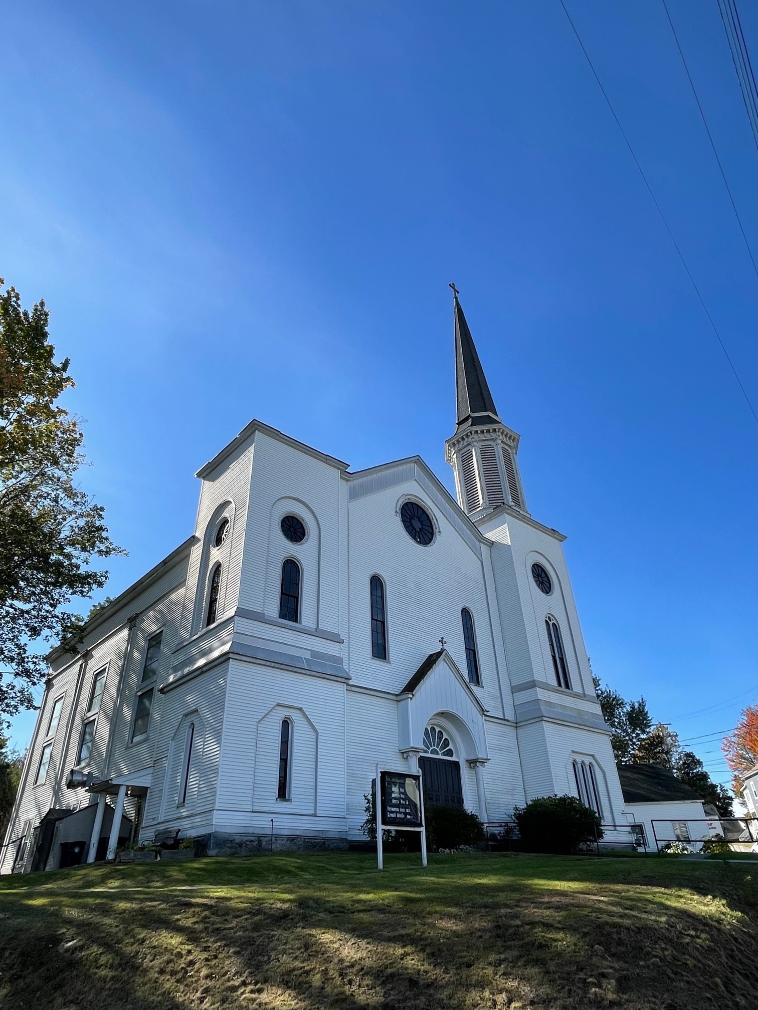 On Sunday, October 15, I worshipped at the Second Congregational Church of Warren, Maine (#41). Following worship, we enjoyed beef stew with homemade yeast rolls and a selection of fall desserts, including pumpkin cake. Yum. During lunch, pictures of recent events scrolled on a television screen. The church takes pride in flowers and landscaping that complement recent improvements on the exterior and interior. Rev. Bette Bond and I made the short, uphill walk to a converted building behind the Baptist church. There, we visited a clothes closet, well-stocked with laundered garments available for free to local families. Displays included Halloween and Christmas attire and a fun tiger hat costume. Congregationalists and Baptists look forward to a shared Thanksgiving Eve worship service, one of many ecumenical collaborations in Warren.