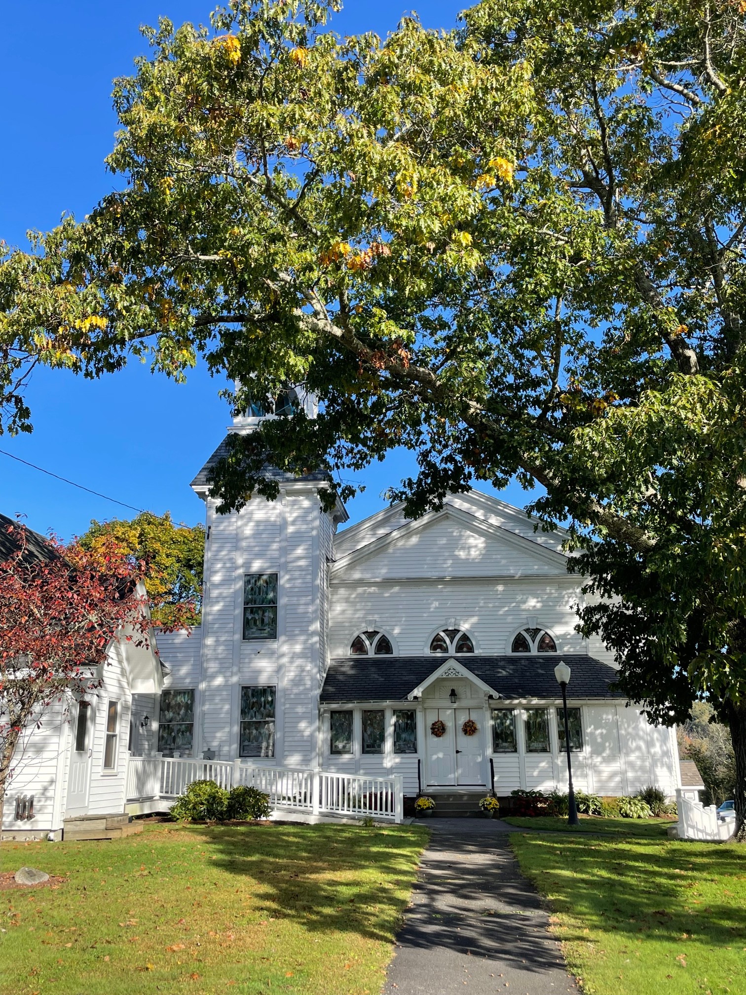 Florence Congregational Church in Massachusetts (#46) welcomed me on October 22 for one of their traditional worship services, held twice a month in conjunction with a restart. In collaboration with the Bombyx Center for Arts and Equity, the church is planning a performance and discussion of the writings of Jonathan Edwards. Music for that occasion was a distinctive offering during the service. The sermon and liturgy acknowledged the conflict and crisis in the Middle East, with concern expressed for the Jewish congregation that worships in the same space. Longtime – and new – church members reflected on the strength of their relationships with one another and the clergy who have blessed them in the past and present.